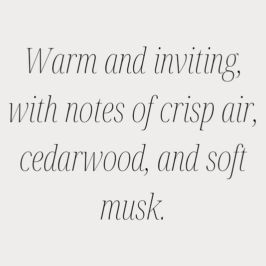 Inspired by the beauty of a Tennessee winter, this fragrance combines the crispness of winter air with the warmth of sweet amber, mandarin leaf, and white cedar. Rich spices like cinnamon and cardamom mingle with nutmeg shavings, sandalwood, and cashmere vanilla, creating a cozy, heartwarming scent that feels like a tender embrace. Perfect for cozying up by the fire and creating memories with loved ones.