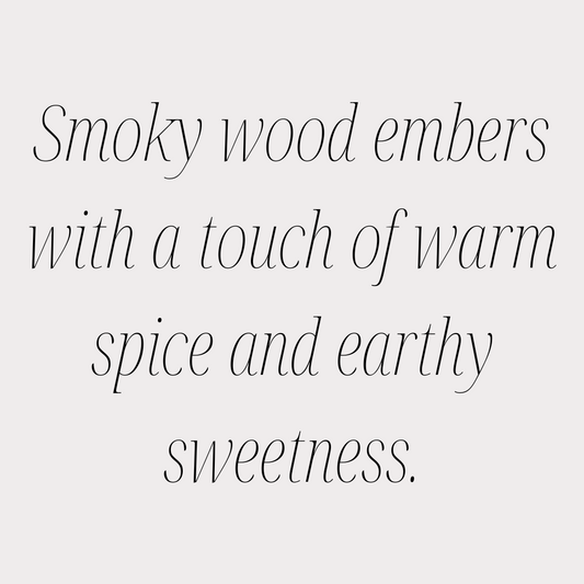 Feel like you're sitting by a cozy fire with our Fireside fragrance. Familiar and distinctive, melding notes of smoke and wood into a warm union of clove, amber, sandalwood, and patchouli.