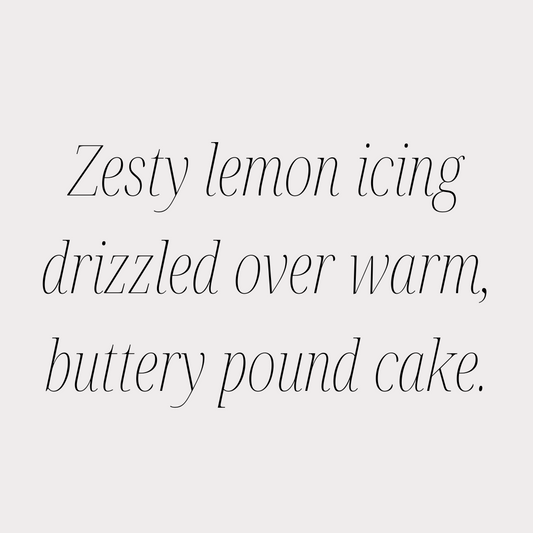 The mouth-watering scent of freshly made Lemon Pound Cake evokes memories of summer picnics and kitchens filled with love. Bright lemon peel and juicy lemon give this bakery fragrance its signature citrus kick, finishing off with butter, sugar, and vanilla.