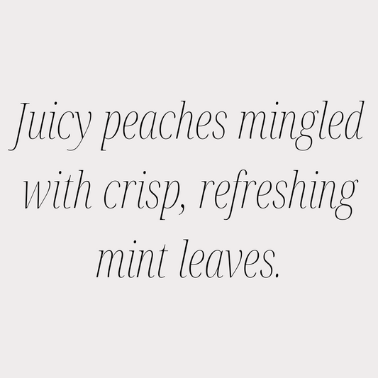 The aroma of freshly sliced peaches artfully blended with fresh mint leaves creates a fresh and clean scent. Light and refreshing, great for summer.