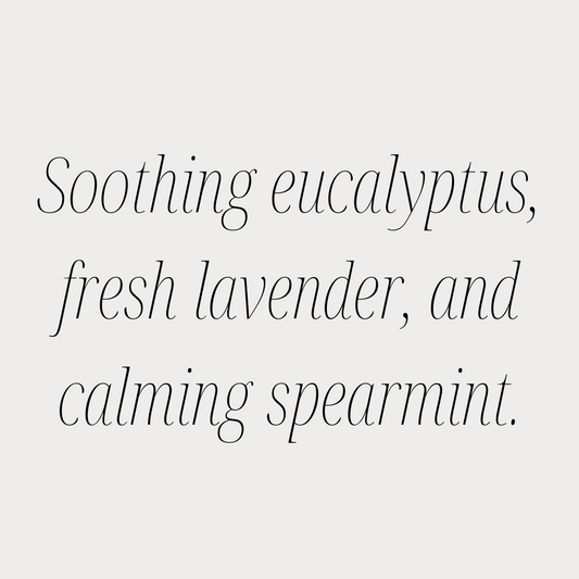 An invigorating herbal blend of eucalyptus and spearmint with fresh citrus lemon, lavender flowers, and a hint of sage. Eucalyptus Oil clears the mind while Spearmint Oil uplifts.
